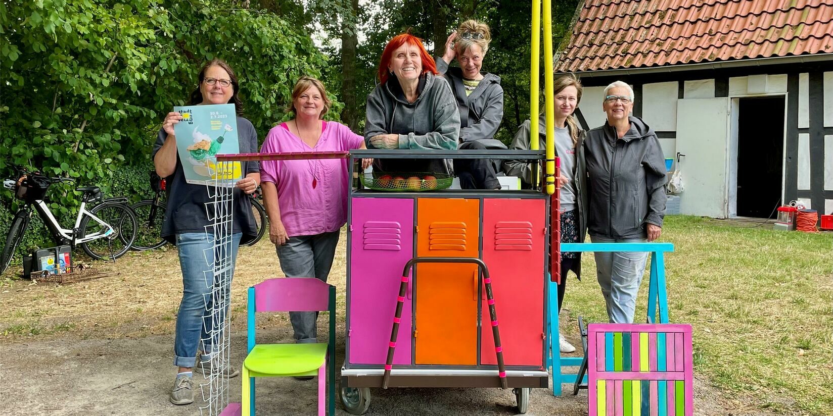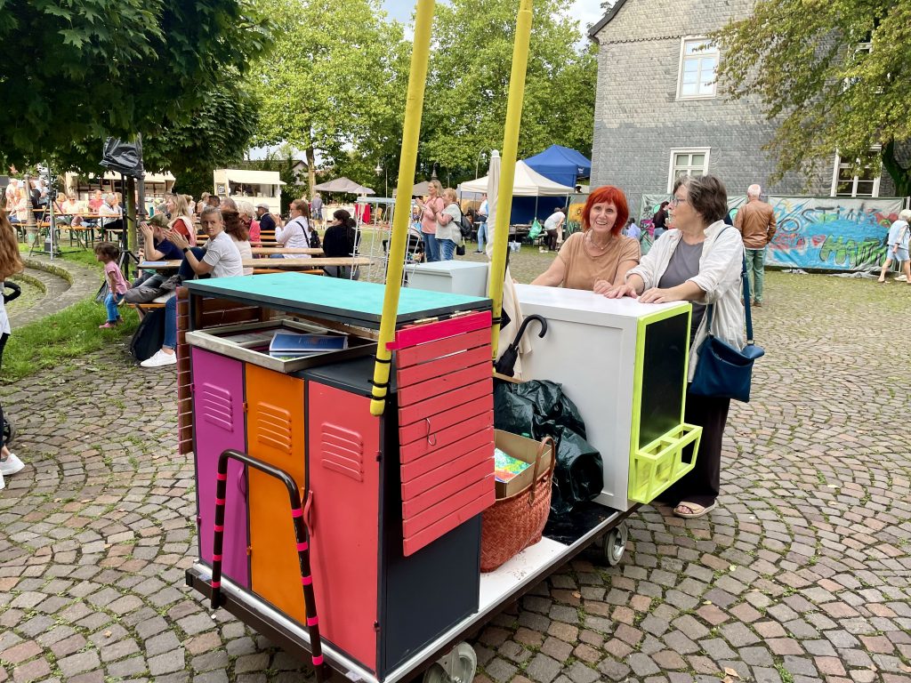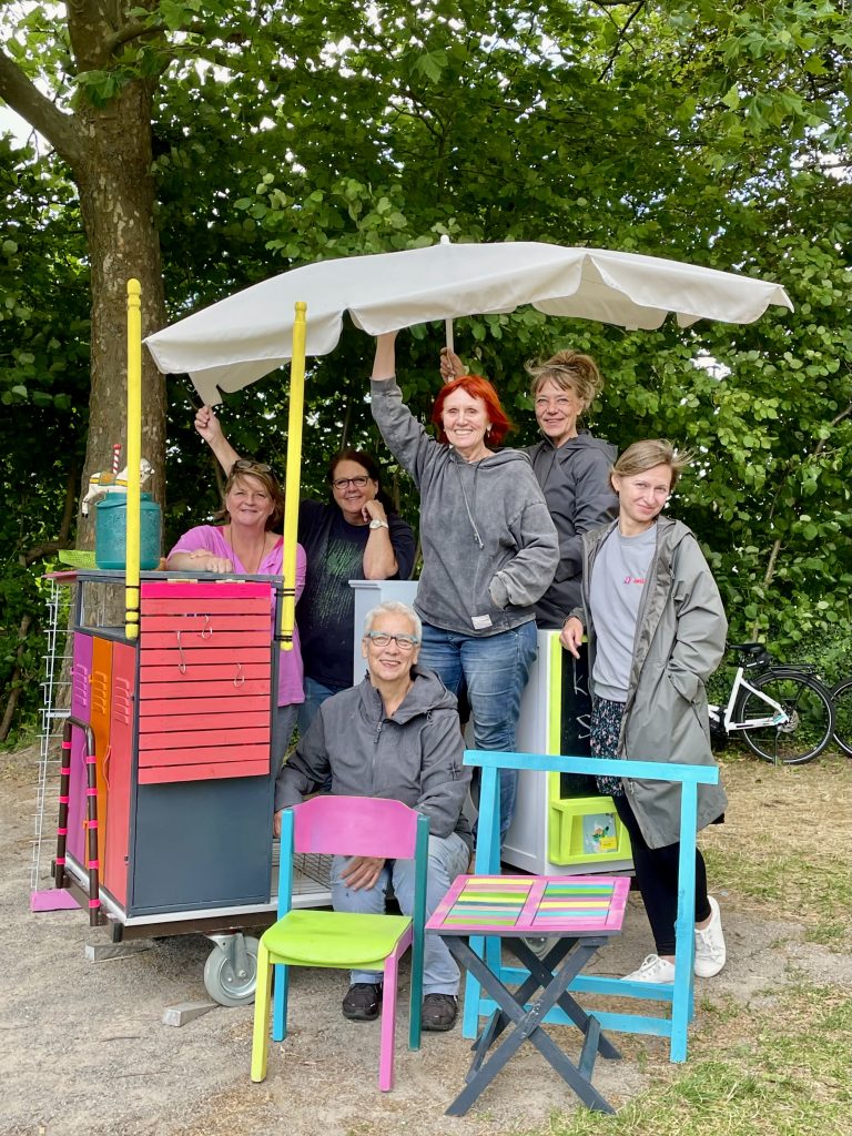 Im Rahmen des Projektes „Kunst-Stunk – Urban Art kann Klima“ initiierte die Berliner Kulturaktivistin und Künstlerin Jaana Prüss mit Schwerter Künstler*innen ein Klima-Mobil aus wiederverwendeten und recycelten Materialien, das multifunktional an unterschiedlichen Orten der Stadt eingesetzt werden kann.